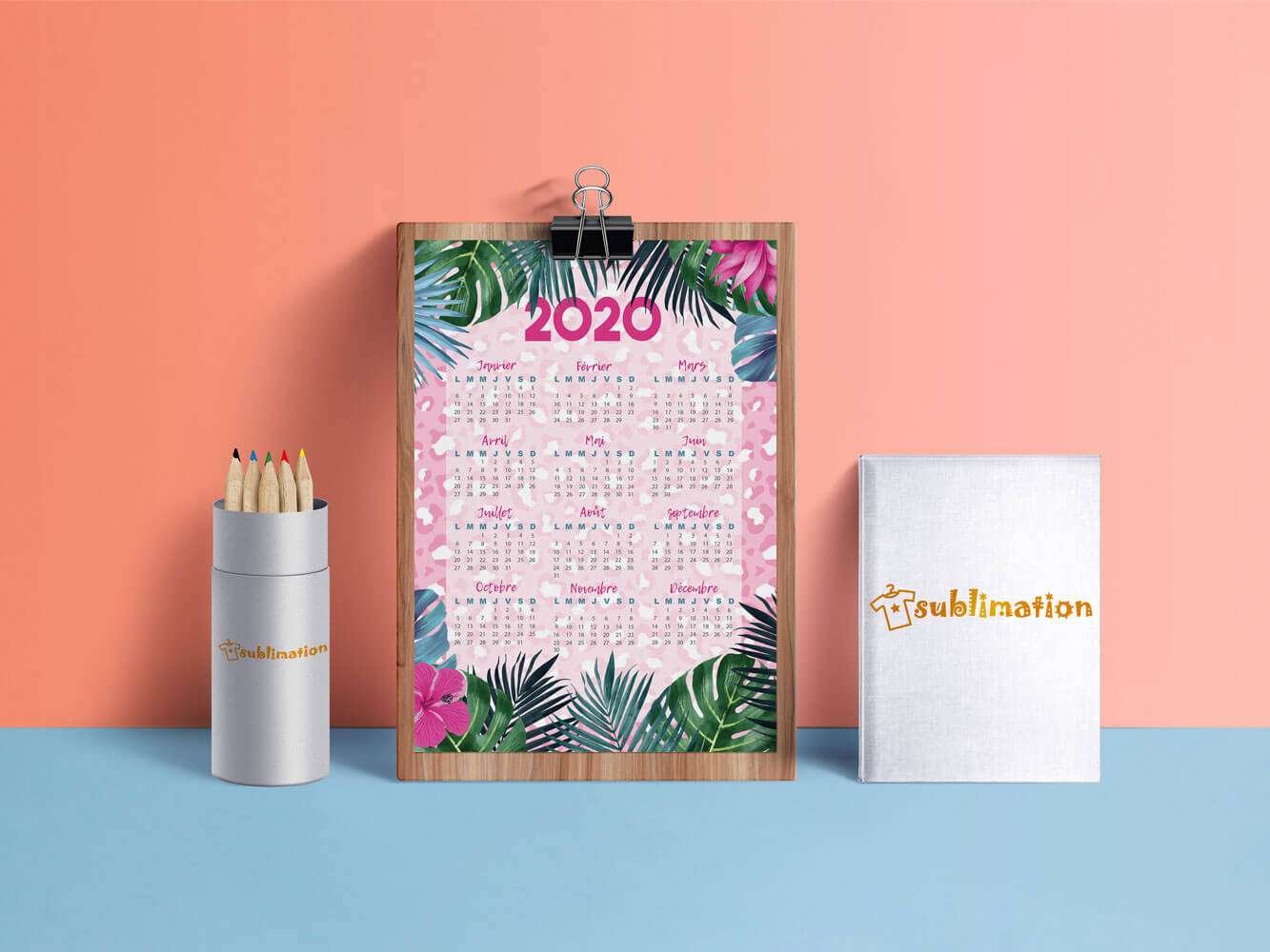 (66 avis client)Calendrier Motif Exotique Année 2020 Format A4/A3 Portrait
