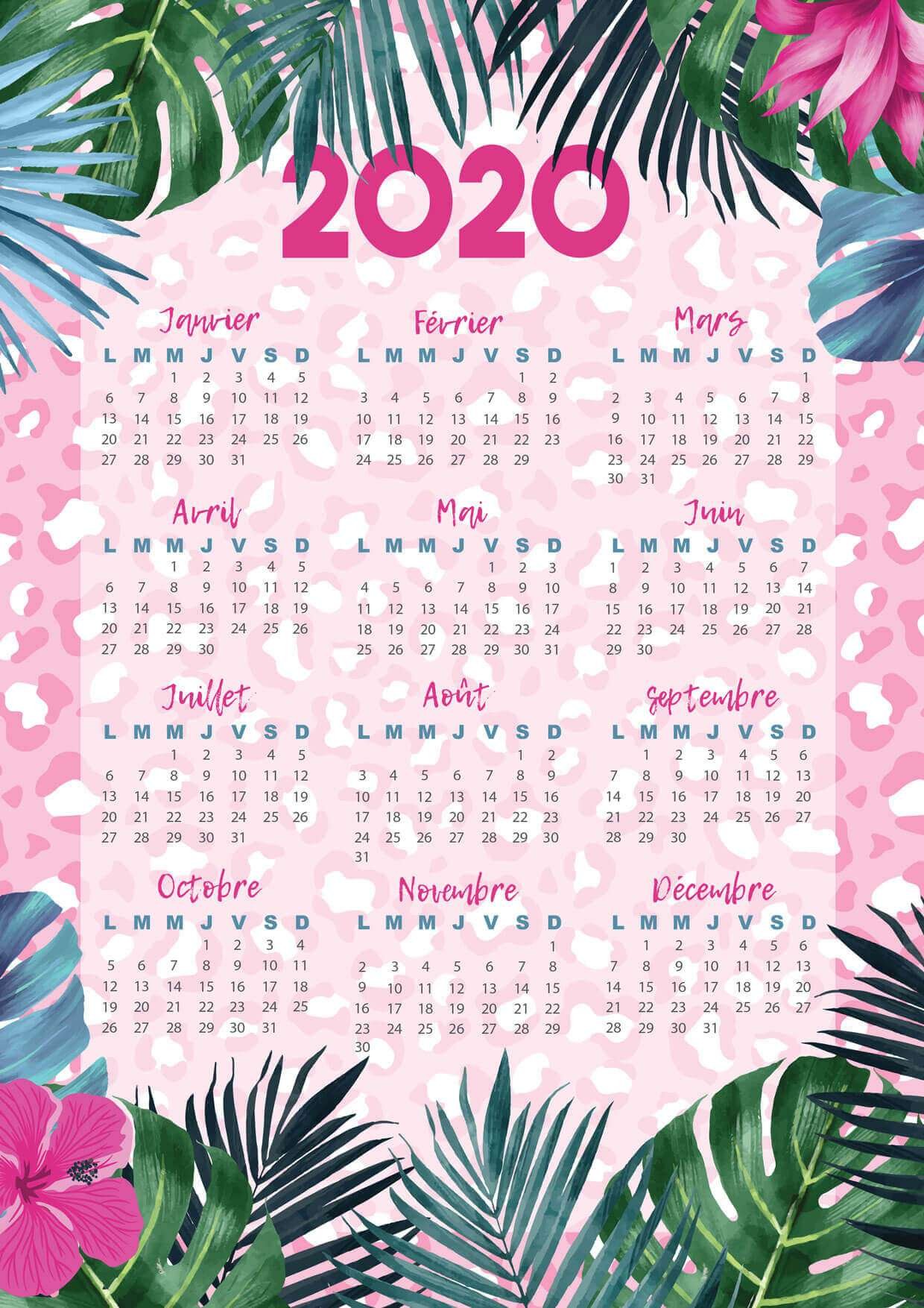 Calendrier Motif Exotique 2020