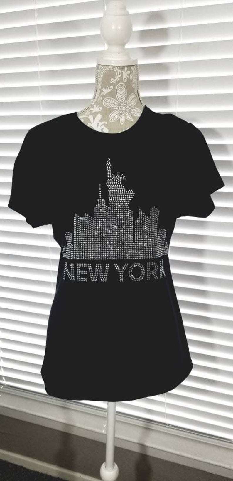 (121 avis client)Tshirt Motif New York City en strass , Un super look , Prix juste .