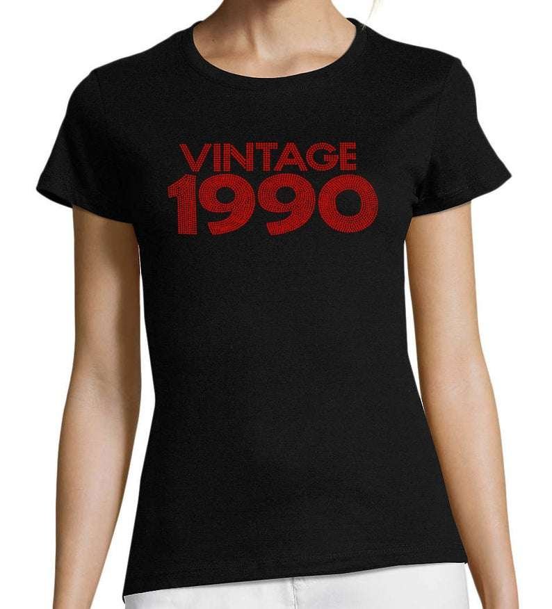 (82 avis client)Tshirt Vintage 1990 en strass , Un super look , Prix juste .